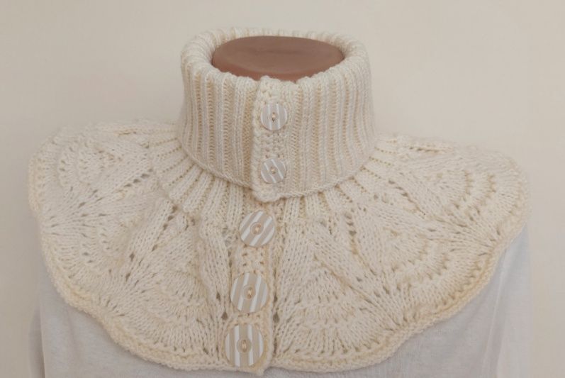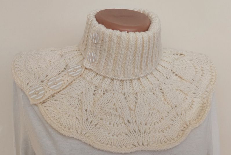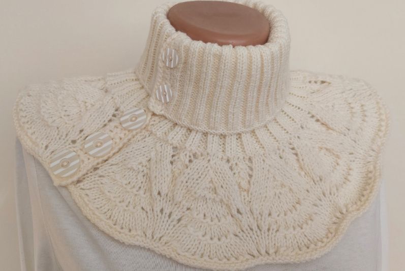 Манишка женская - очень удобный аксессуар в осенне-зимний период. Вязаная манишка на пуговках, позволит одевать ее не нарушая прически, а смещая планку с пуговками, получать различные варианты манишек, что даст Вам возможность каждый день быть разной ;)