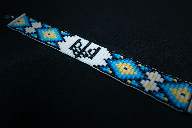 - ручная работа - 14,5 см.(+5 см. удлинитель) * 2 см. - фурнитура медицинская сталь - бисер чешский, нити - в наличии - цена 170 грн.