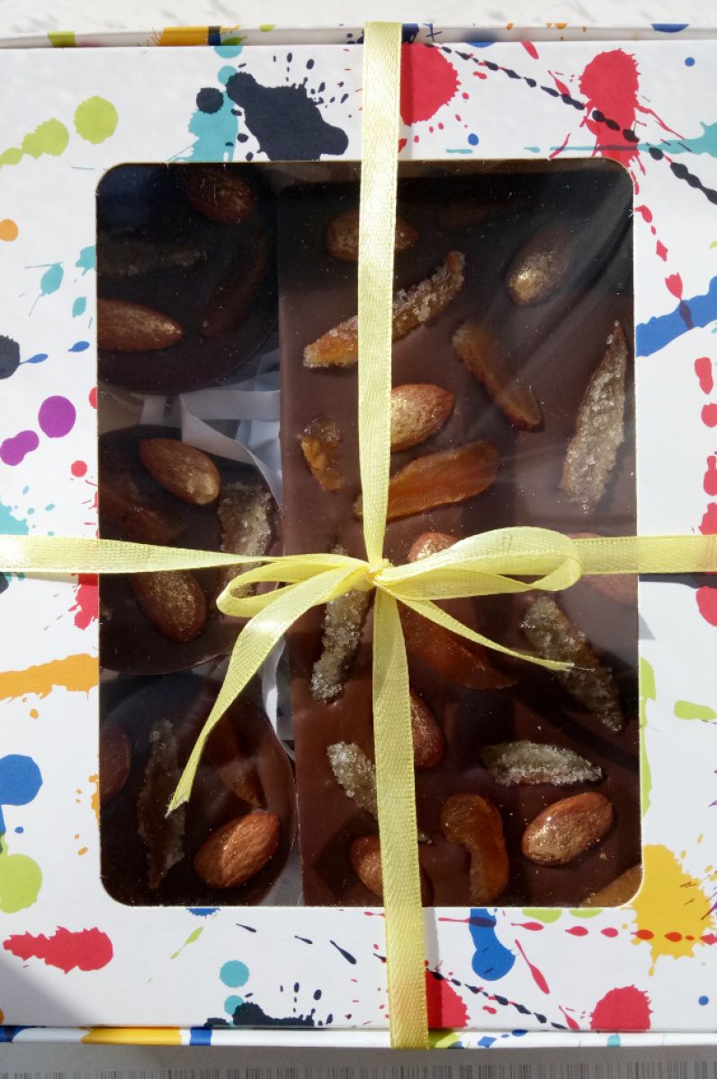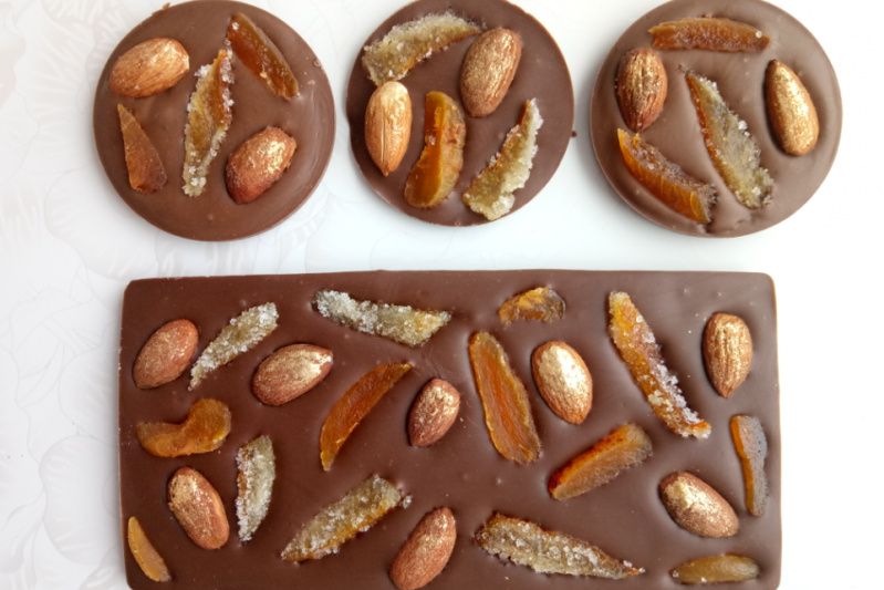 Набор из молочного шоколада с апельсиновыми цукатами, курагой и миндалем: шоколадка и 3 медиант