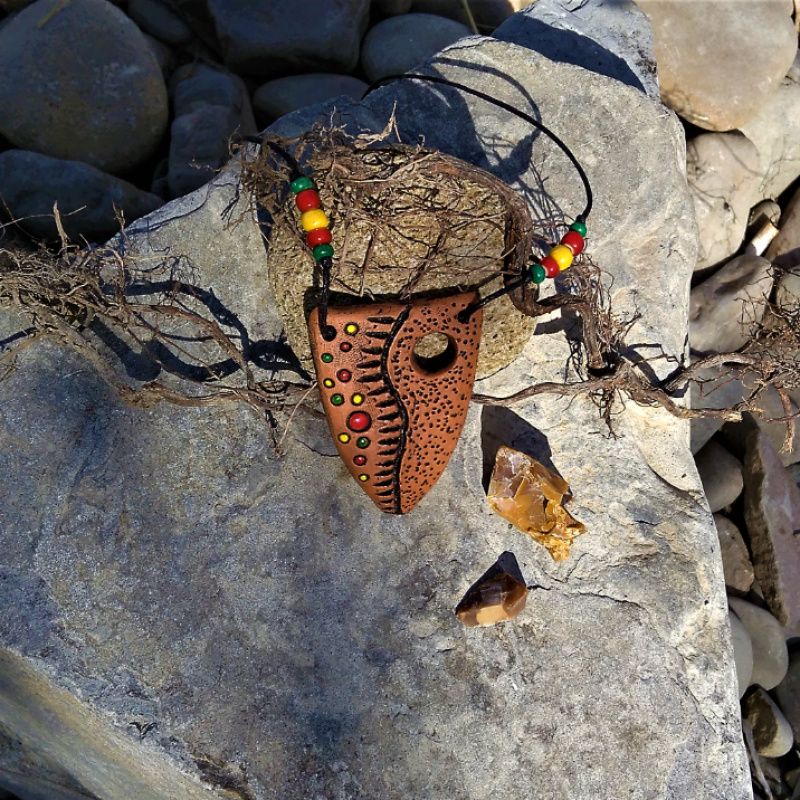 Подвеска керамическая ручной работы из красной глины, роспись акриловыми красками