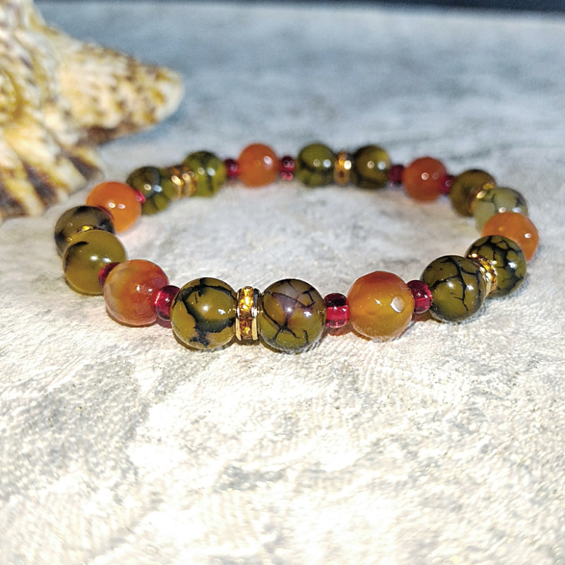 Браслет из натурального сердолика ′Феникс′ - красивое и стильное украшение унисекс в теплых, красно-коричневых оттенках.