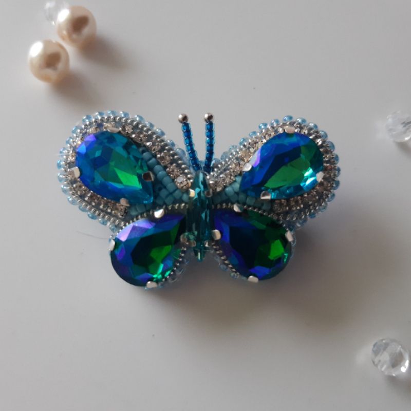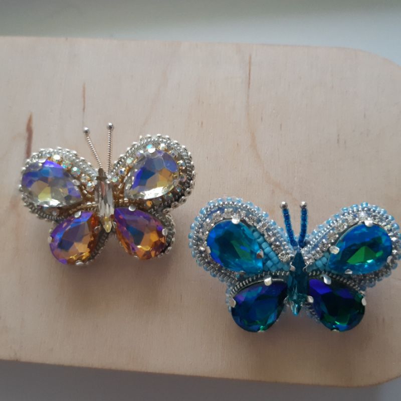 Броши из страз и бисера, можно носить на шапке, на верхней одежде