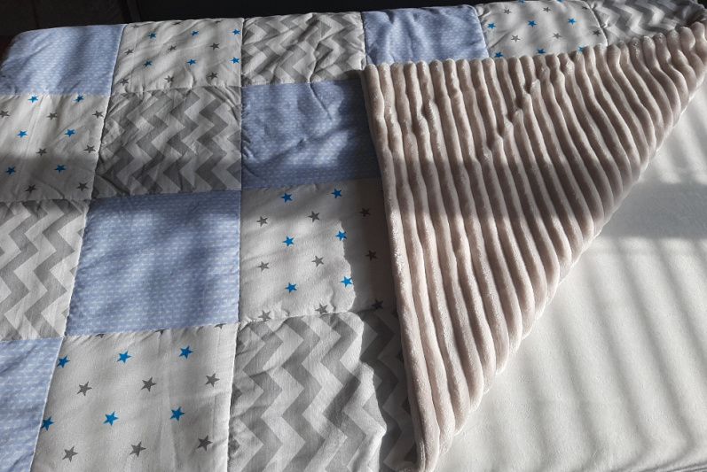 Плед из натурального хлопка и нежным плюшем согреет малыша в любую погоду в кроватке или коляске. Плед можно использовать как конверт на подъемник, добавив бант на резинке. Наполнитель синтепон Размер 109*92см