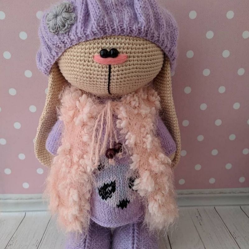 Каждая девочка будет в восторге от такой игрушки. Оригинальная идея современного подарка. Зайка может самостоятельно стоять и сидеть. Ручки и ножки подвижны. Вся одежда снимается (кроме трусиков)