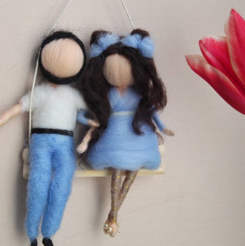 Особенности: куклы валяние шерсти — куклы свадебные пара — мини куколки своими руками на деревянной качеле по 14 см — интерьерные куклы на свадьбу. Интерьерные куклы свадебная пара Жених и Невеста выполнены с шерсти мериноса в свадебном образе на деревянной качели — снимаются! Кукла свадебные из шерсти — валяние из шерсти куклы сделаны в виде сувенира подарка молодым. Куклы валяные из шерсти свадебные интерьерные игрушки можно использовать как подарочные сувениры на свадьбу, годовщину, помолвку, день Святого Валентина
