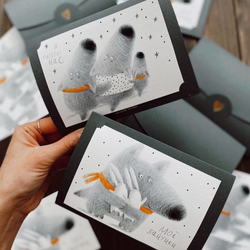 Особенности: набор праздничных открыток 2 шт - открытка ручной работы – красивые рисованные открытки с новым годом 10 х 14 см из надписью на украинском языке: «Мої зайчики» та «Я люблю нас». Красивая открытка – открытка с новым годом 2022 – милое признание друзьям и родным!
