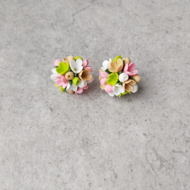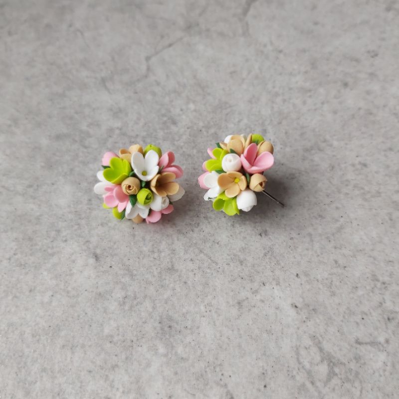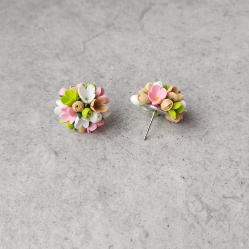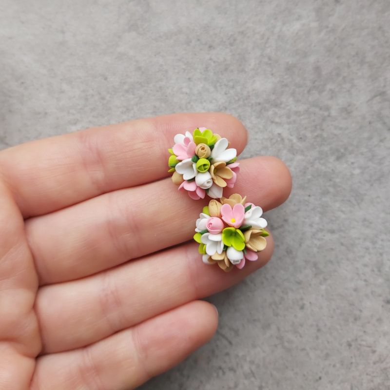 Яркие сережки из глины – небольшие женские серьги с полимерная глины – маленькие весенние цветы в виде серьг гвоздики. Весенние цветы из полимерной глины – разноцветные серьги цветы – размером 2 см на швензах с нержавеющей стали