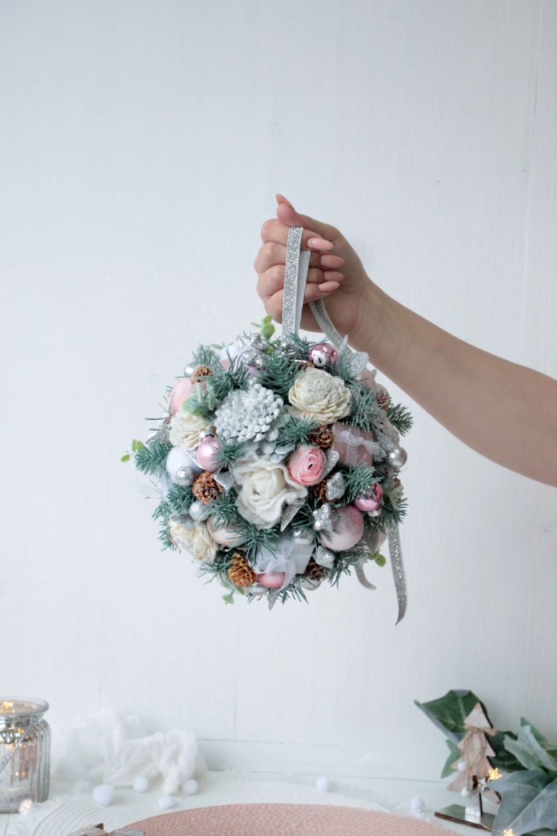 Новорічна підвісна куля в ніжно-рожевому кольорі,стане оригінальним доповненням для вашого дому в новорічні свята та стане чудовим подарунком для ваших близьких,колег по роботі.