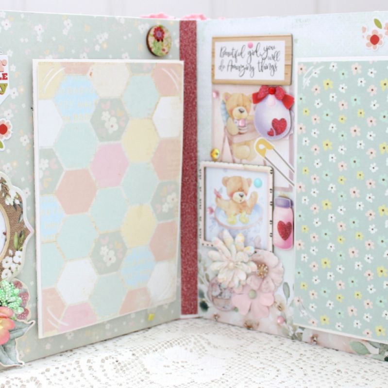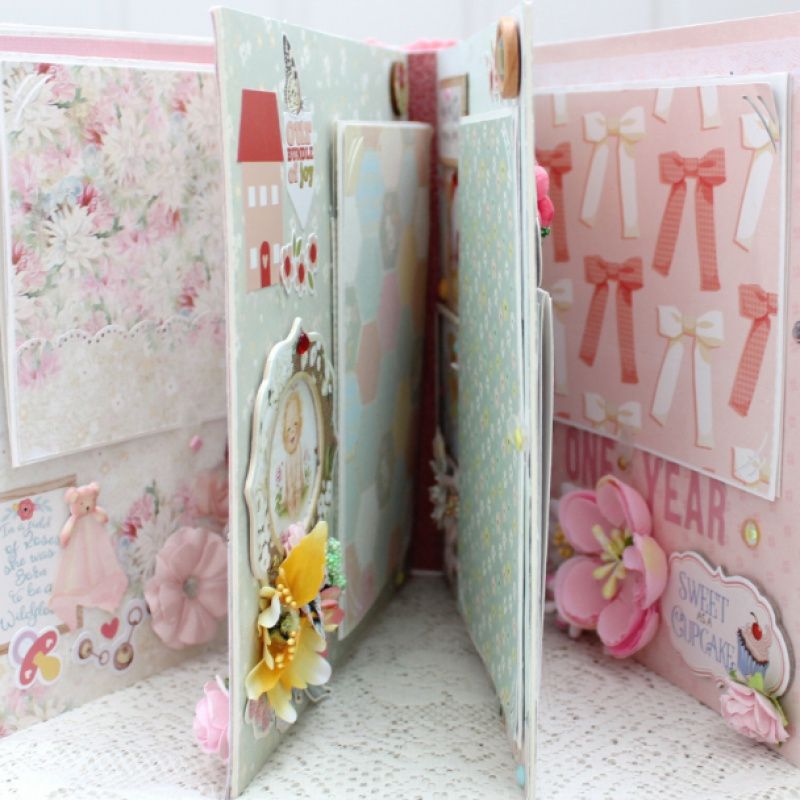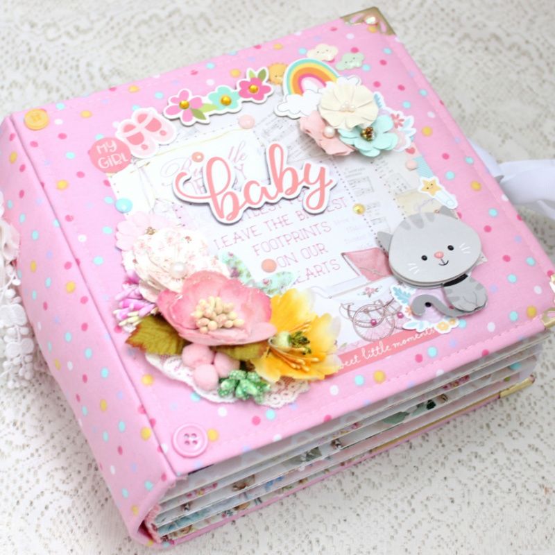 Альбом для девочки первого года жизни.Изготовлен из качественных материалов известных брендов.Послужит отличным подарком на рождение малышки,на первый год жизни девочки.Альбом вмещает более 50 фотографий