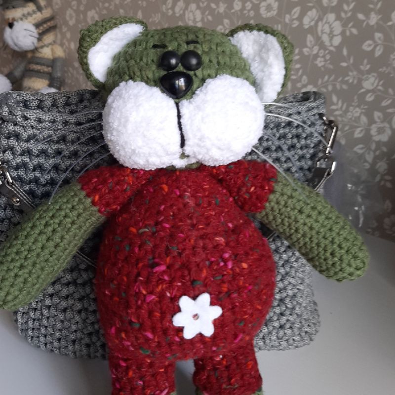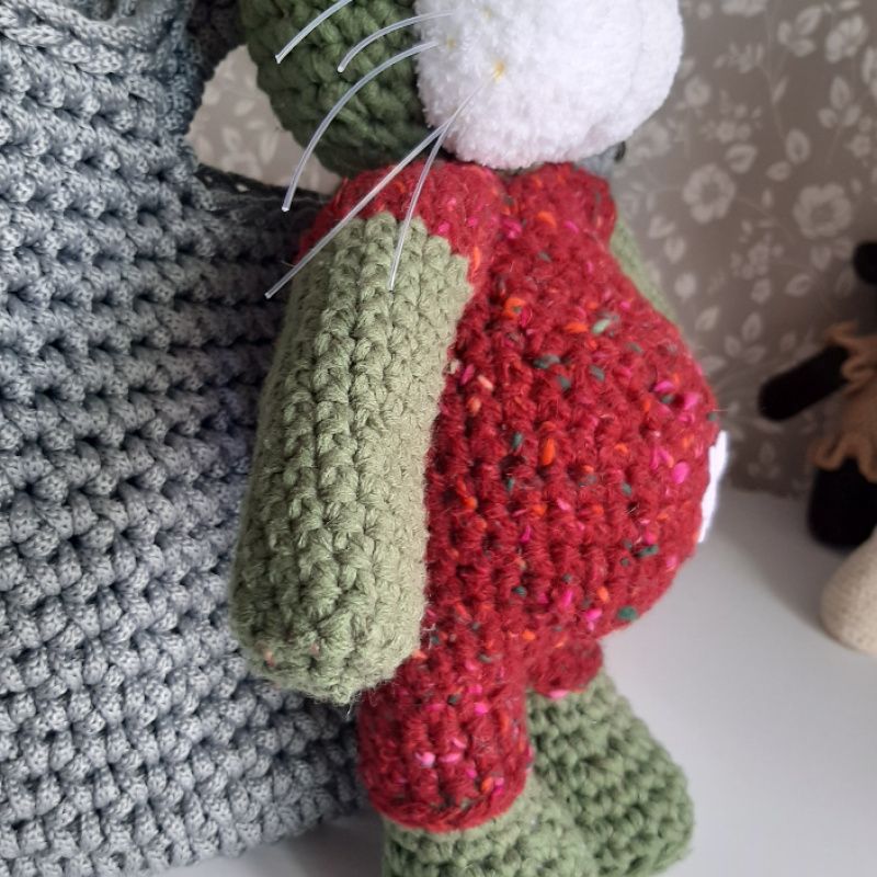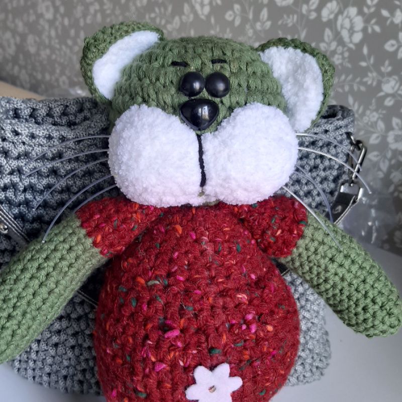 Размер игрушки 35см. Использована пряжа- шерсть, хлопок, плюш. Набивка- холлофайбер.Нос и глаза пластмассовые. Материалы не вызывают аллергических реакций.