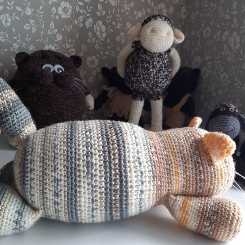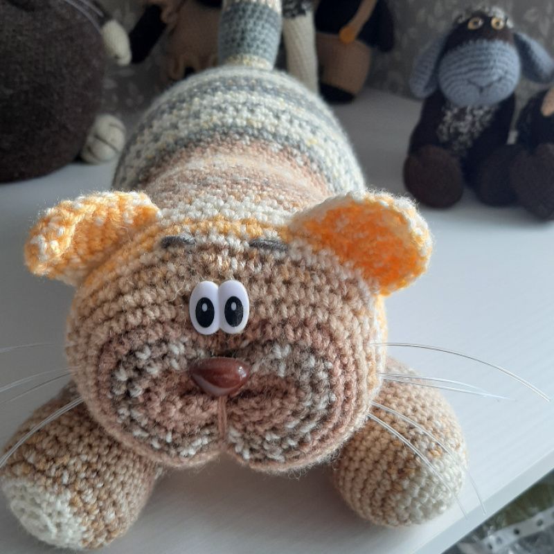 Прикольный кот может украсит интерьер, послужить сувениром.Мягкий на ощуп. Безопасен для детей.