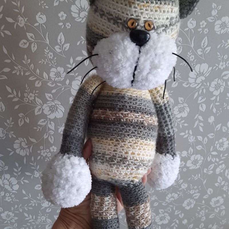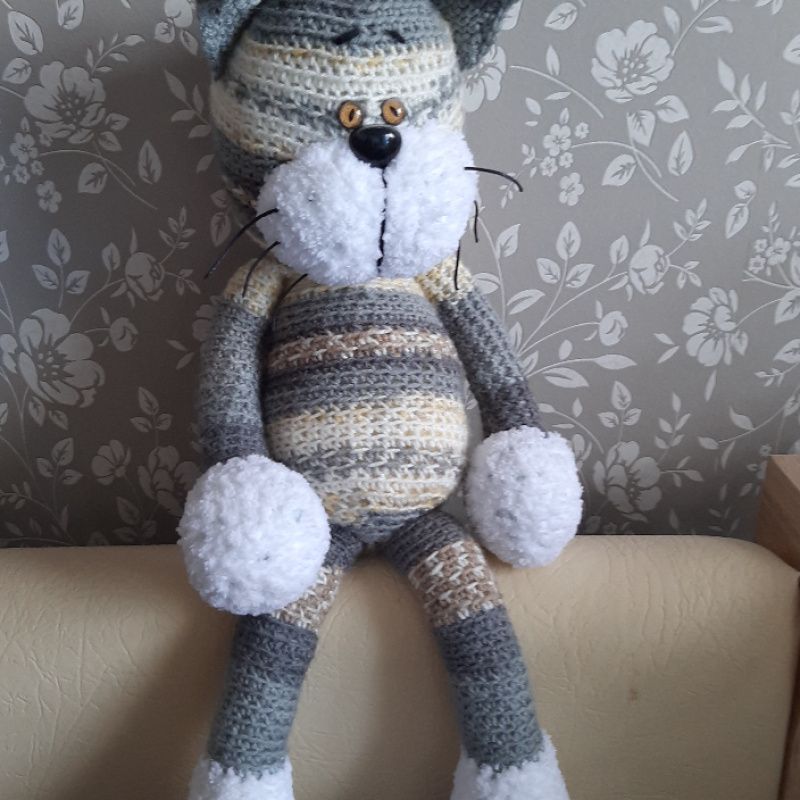 Игрушка функциональная.Ручки-ножки двигаются свободно.Можно одевать-раздевать-кутать-пеленать-спать в обнимку.Усы не колючие.Безопасно для детей.