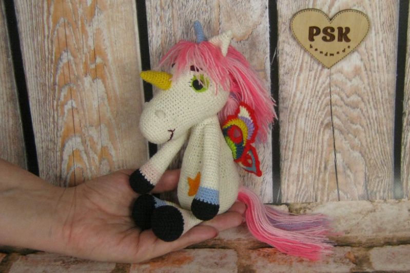 Единорог вязаная крючком мягкая игрушка с крыльями бабочки 2