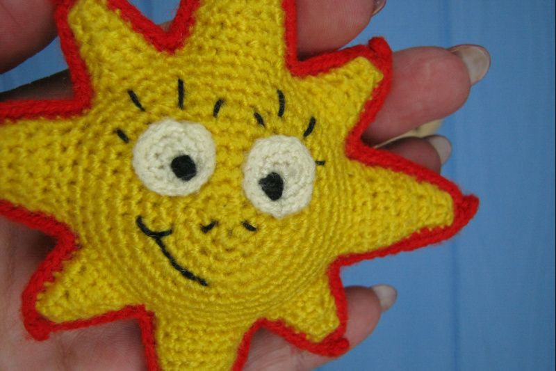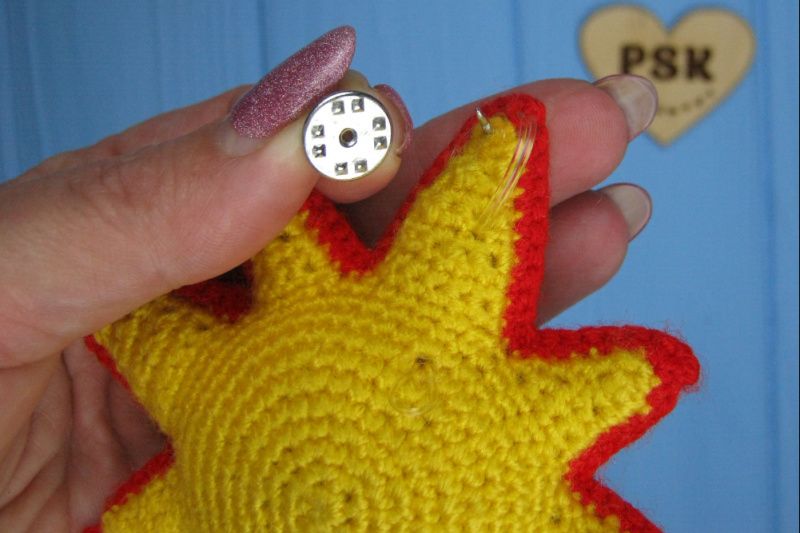 Солнце лицом смайлик. Вязаная вышитая брошка ручной работы 1