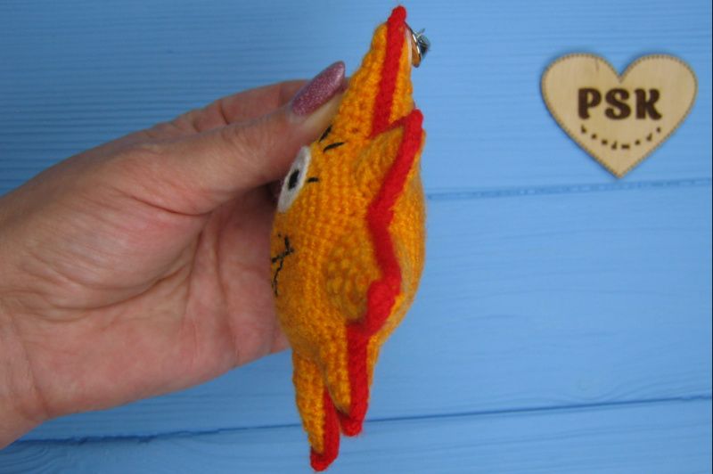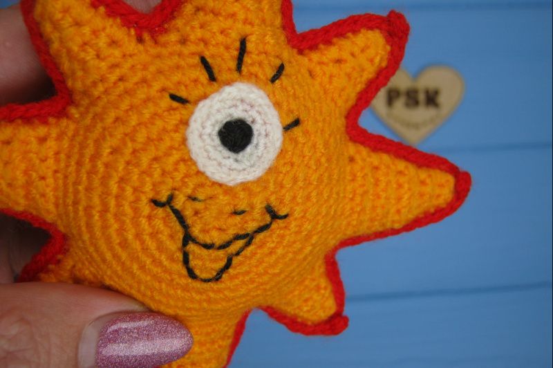 Солнце лицом смайлик. Вязаная вышитая брошка ручной работы 3