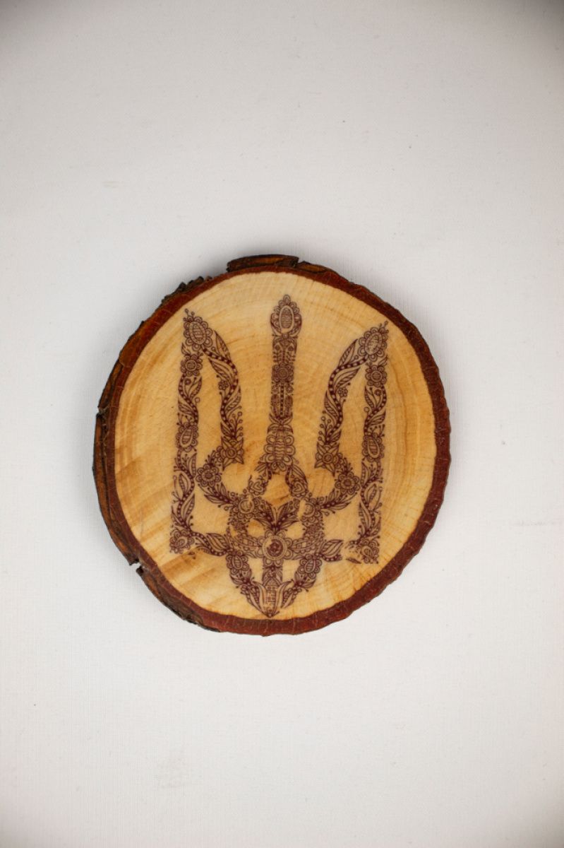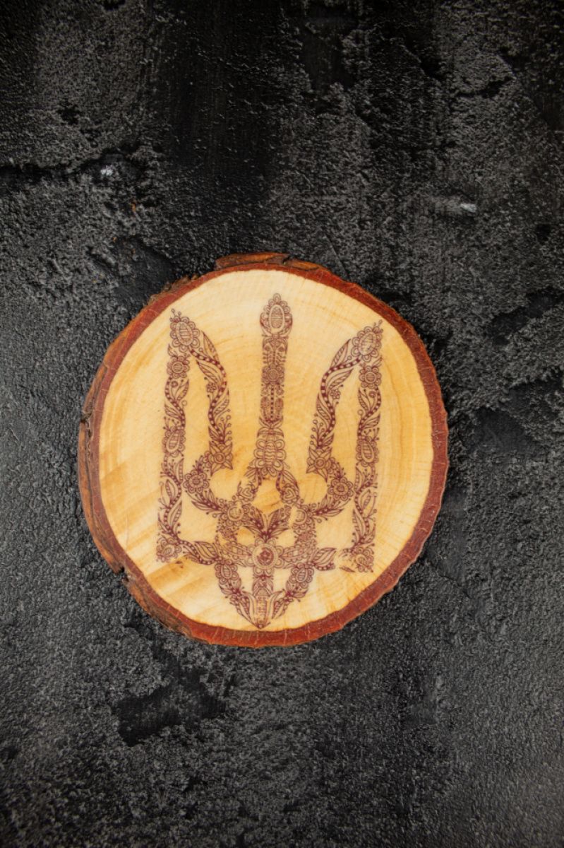 Декоративный магнитик "Герб". Сувенир с украинской символикой "Герб", ручной работы, выполнен из натурального дерева с использованием техники декупаж и лака. Диаметр: 10-11 см В наличии 1 шт. Можем выполнить под заказ, в необходимом количестве, другого цвета, с другим рисунком, или логотипом итд.