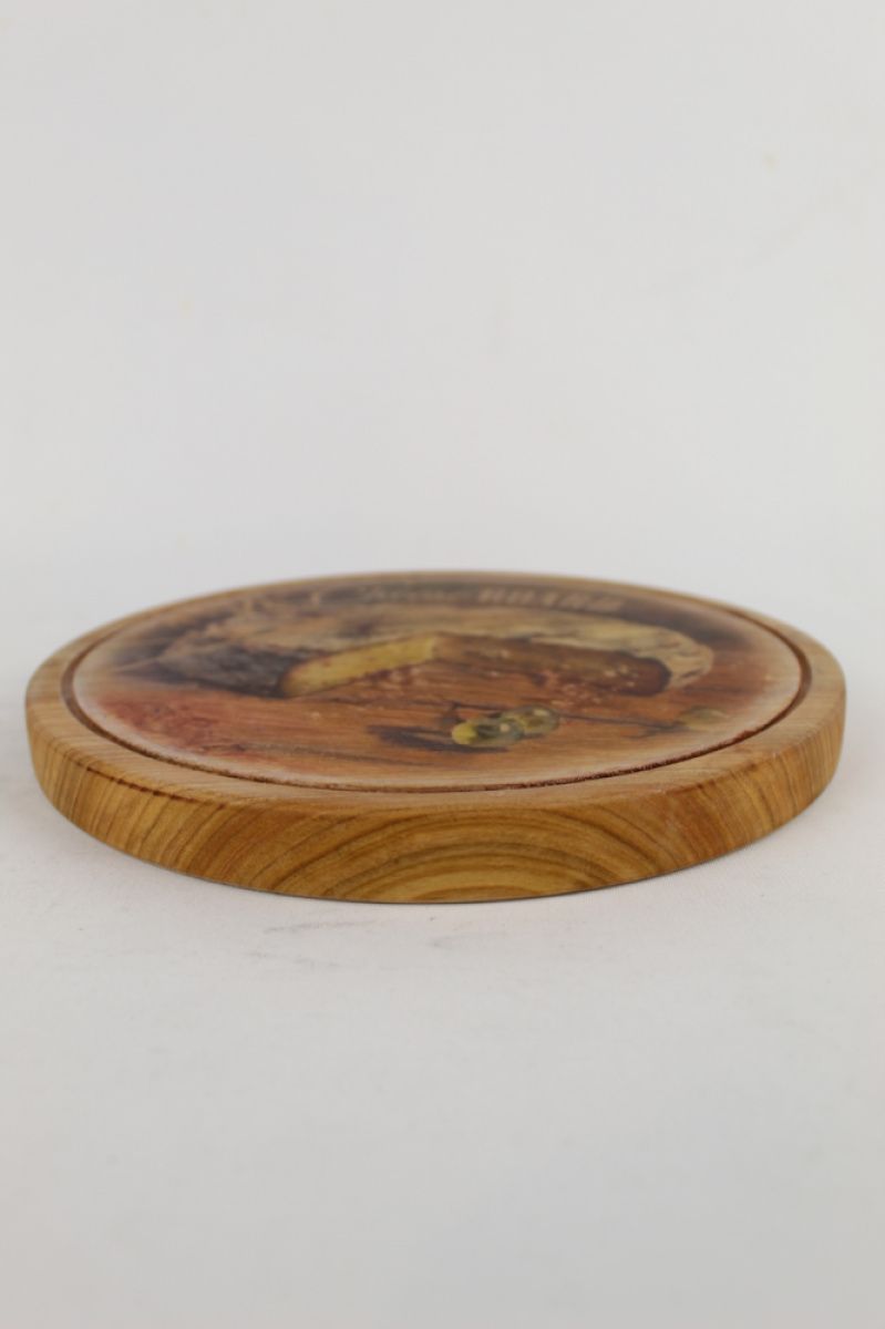 Декоративная доска Pride & Joy для сервировки с натурального дерева украшенная с помощью техники декупажа. Она станет прекрасным украшением Вашей кухни и стола или невероятным подарком для близких или друзей. Также ее можно использовать в food фото и видео проектах. Диаметр: 20см Вес: 280 гр Каждая дощечка изготавливается вручную, специально для Вас, поэтому конечная обработка деревянной подставки, оттенок цвета и рисунок, может варьироваться в зависимости от каждой модели. Данную модель можно изготовить под заказ в необходимом количестве. Цвет и размер можно пидбраты индивидуально. Можно заказать отдельно и по желанию: 1) Гравировка - цена зависит от вида, размера и количества символов.