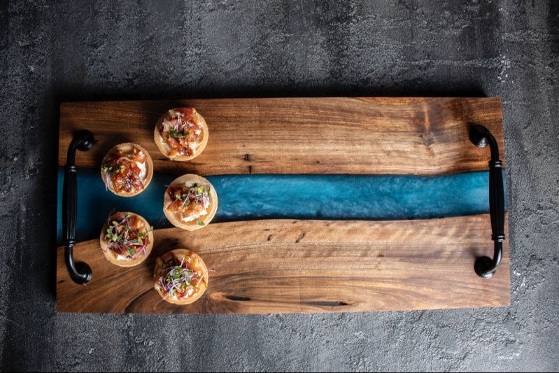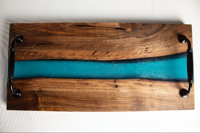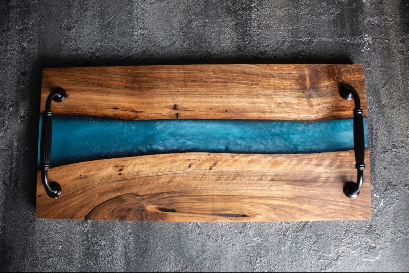 Декоративная доска Pride & Joy для сервировки с эпоксидной смолы и натурального дерева (ореха). Она станет прекрасным украшением Вашей кухни и стола или невероятным подарком для близких или друзей. Также ее можно использовать в food фото и видео проектах. Размер дощечки: 45 * 22 * 2 см Вес: 1,5 кг Каждая дощечка изготавливается вручную, специально для Вас, поэтому конечная обработка деревянной подставки, оттенок цвета и рисунок эпоксидной смолы, может варьироваться в зависимости от каждой модели. Мы не можем гарантировать точное оттенок и текстуру дерева и эпоксидной смолы. Данную модель можно изготовить под заказ в необходимом количестве. Цвет и размер можно пидбраты индивидуально. Можно заказать отдельно и по желанию: 1) Гравировка - цена зависит от вида, размера и количества символов.