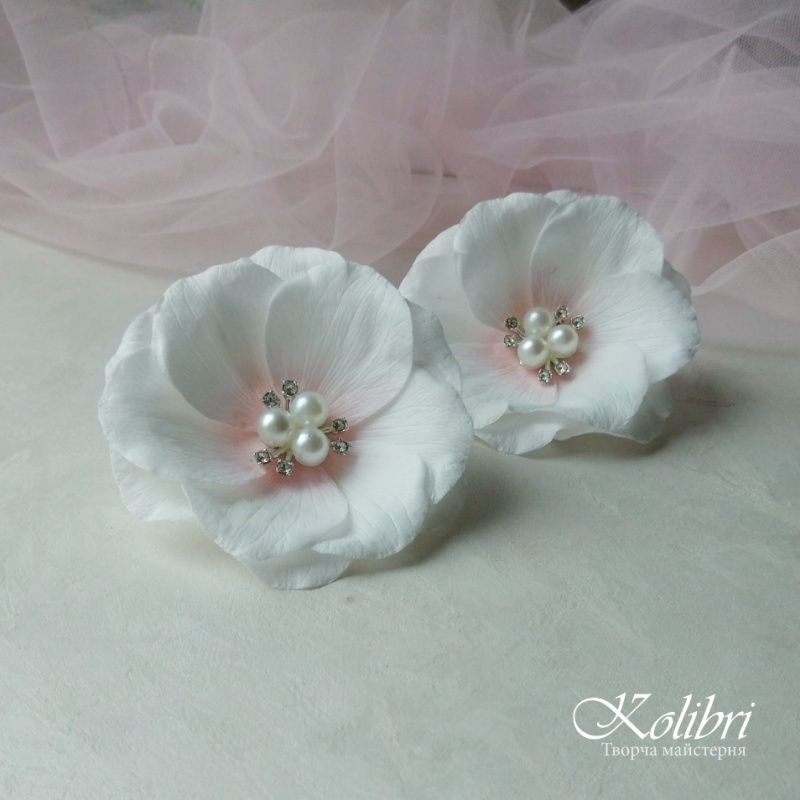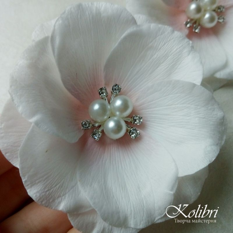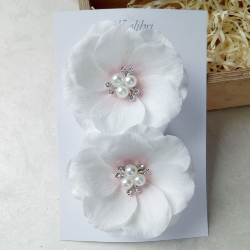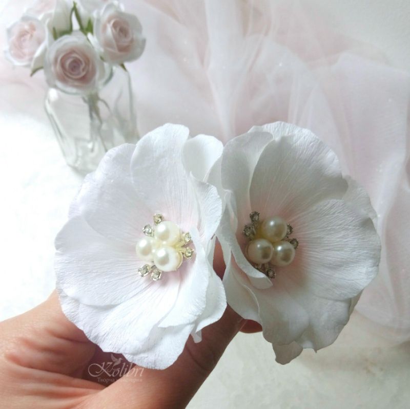 Нежные воздушные цветочки дополнены стразовой серединкой. Отличный вариант украсить праздничную прическу