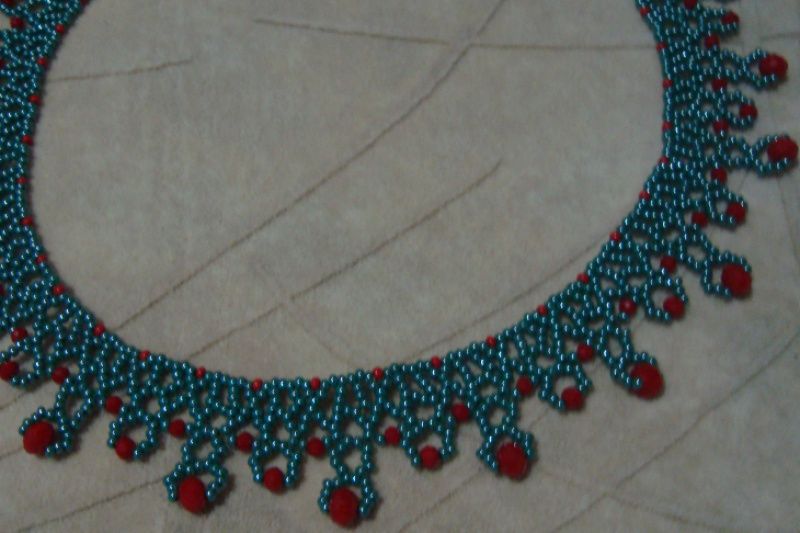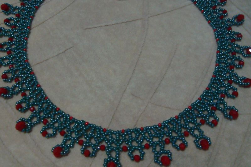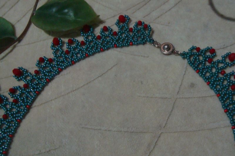 Очень ажурное плетение колье из чешского бисера с кристаллами трех размеров, металлический замок .