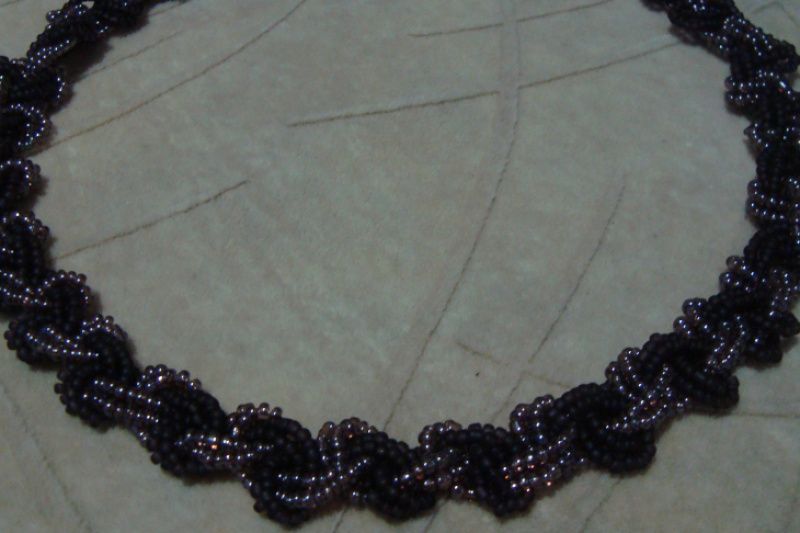 Бисерное колье из чешского блестящего и матового бисера, сплетено в технике плетения макраме, замок - карабин.