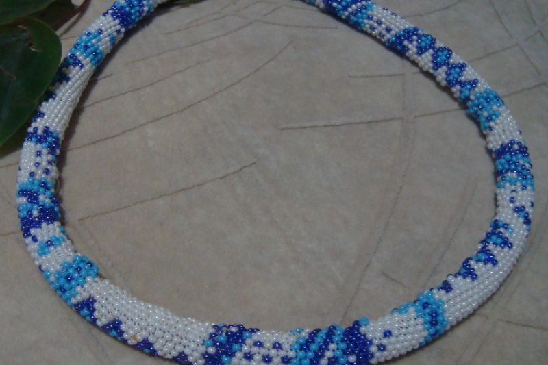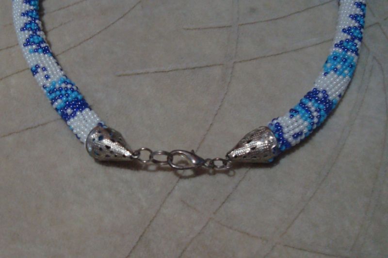 Бисерный жгут в зимних цветах, из чешского бисера, замок - карабин