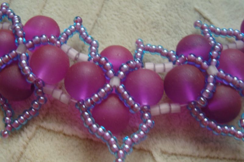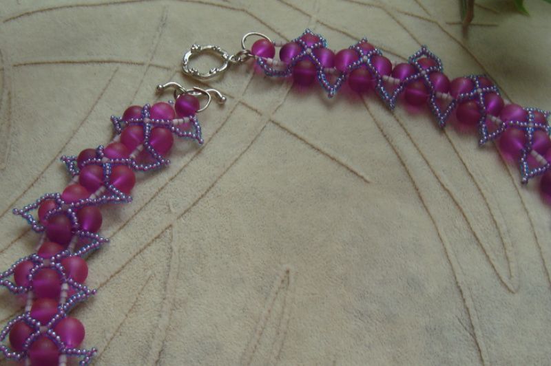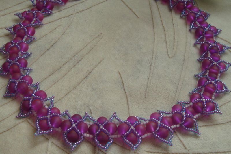 Колье изготовлено из стеклянных бусин, чешского бисера и сатиновой рубки, застежка - красивый тогл из металла