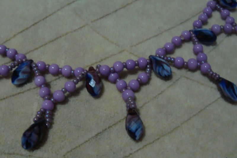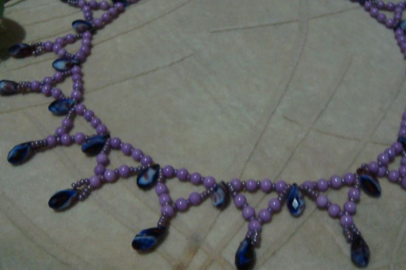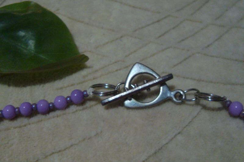 Колье из мелких бусинок сиреневого цвета, чешского бисера и бусин-подвесок, застежка - тогл