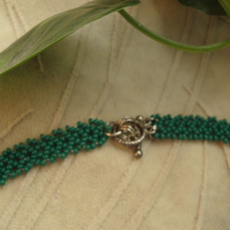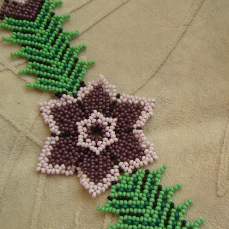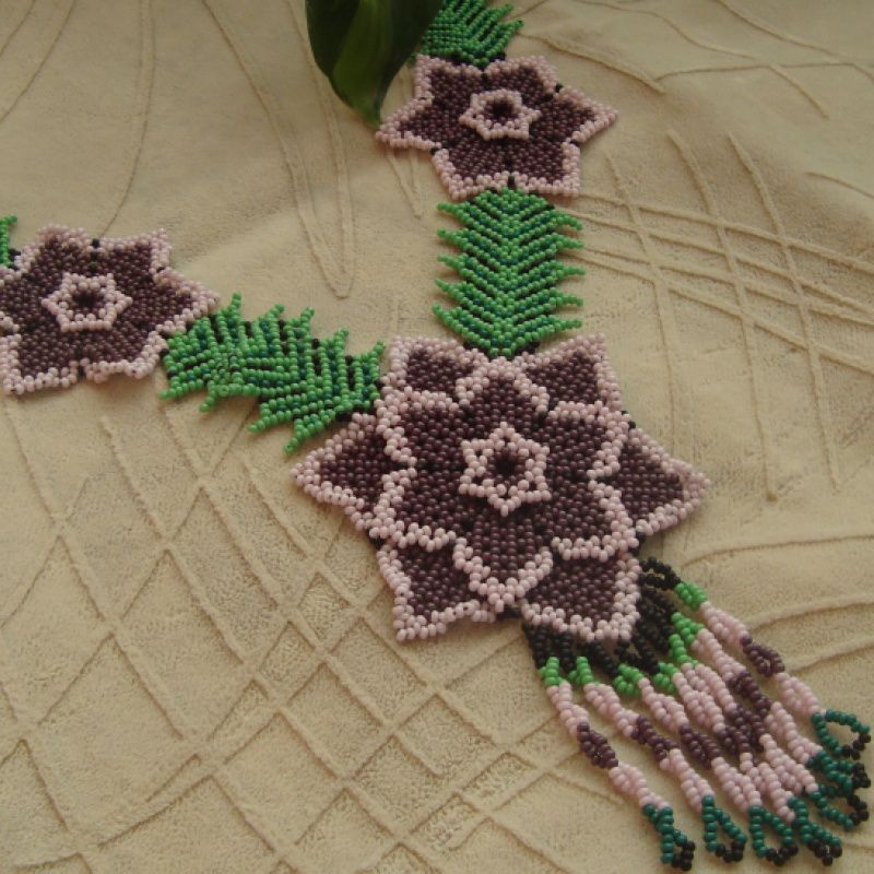 Колье в технике уичольских мотивов из чешского бисера, длина от замка до низа снизок 40 см, замок-тогл