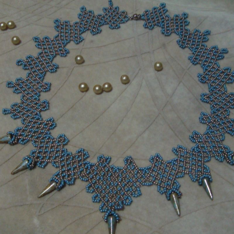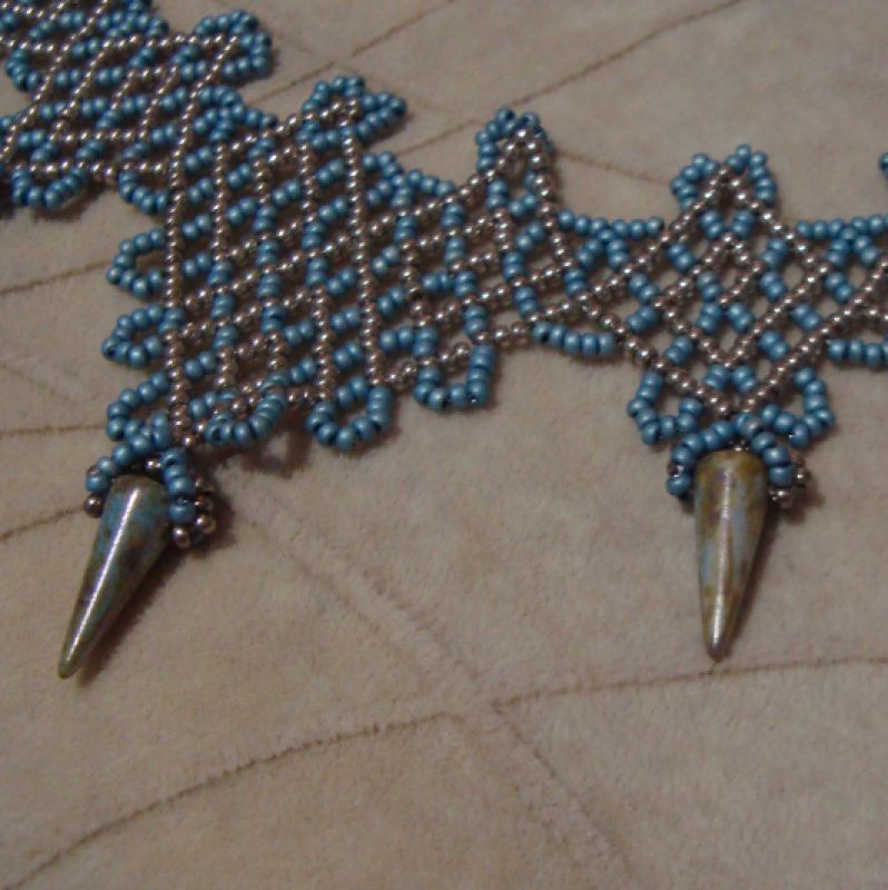 Колье изготовлено из чешского бисера украшено чешскими бусинами-пирамидками на магнитном замочке