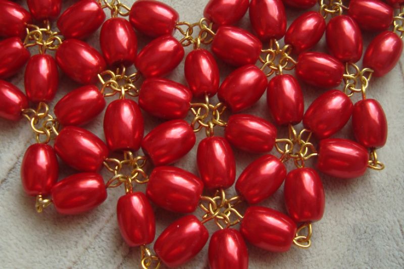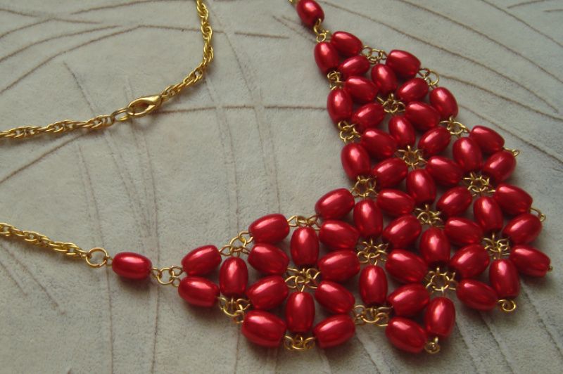 Колье из бусин-бочонков на металлической цепочке, замок-карабин
