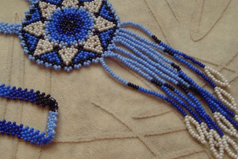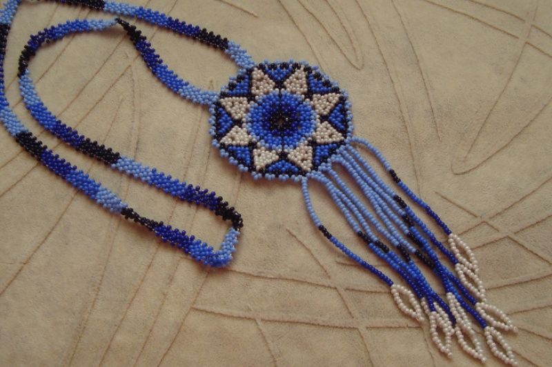 Мандала в уичольском стиле с подвесками выполнена из чешского бисера, без застежки