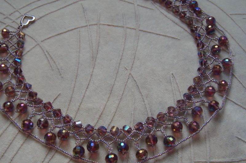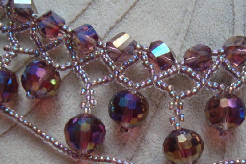 Колье из шикарных граненых хрустальных бусин и чешского бисера на застежке - тогл