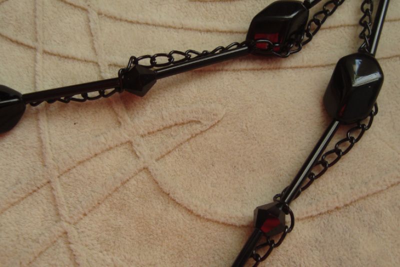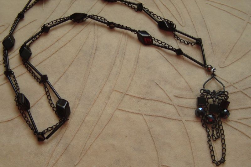Сотуар выполнен в черном цвете из длинного стекляруса, чешских бусин, на черной металлической фурнитуре, без замка