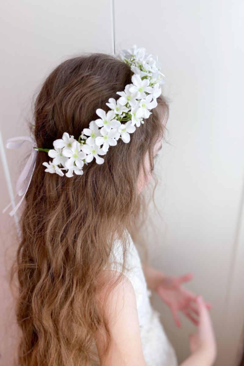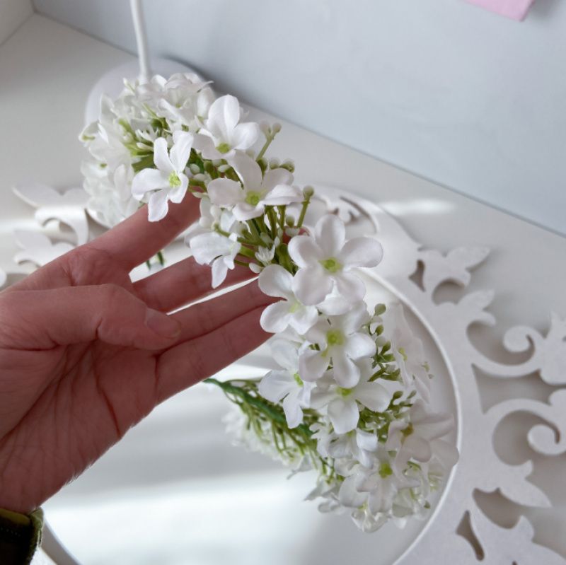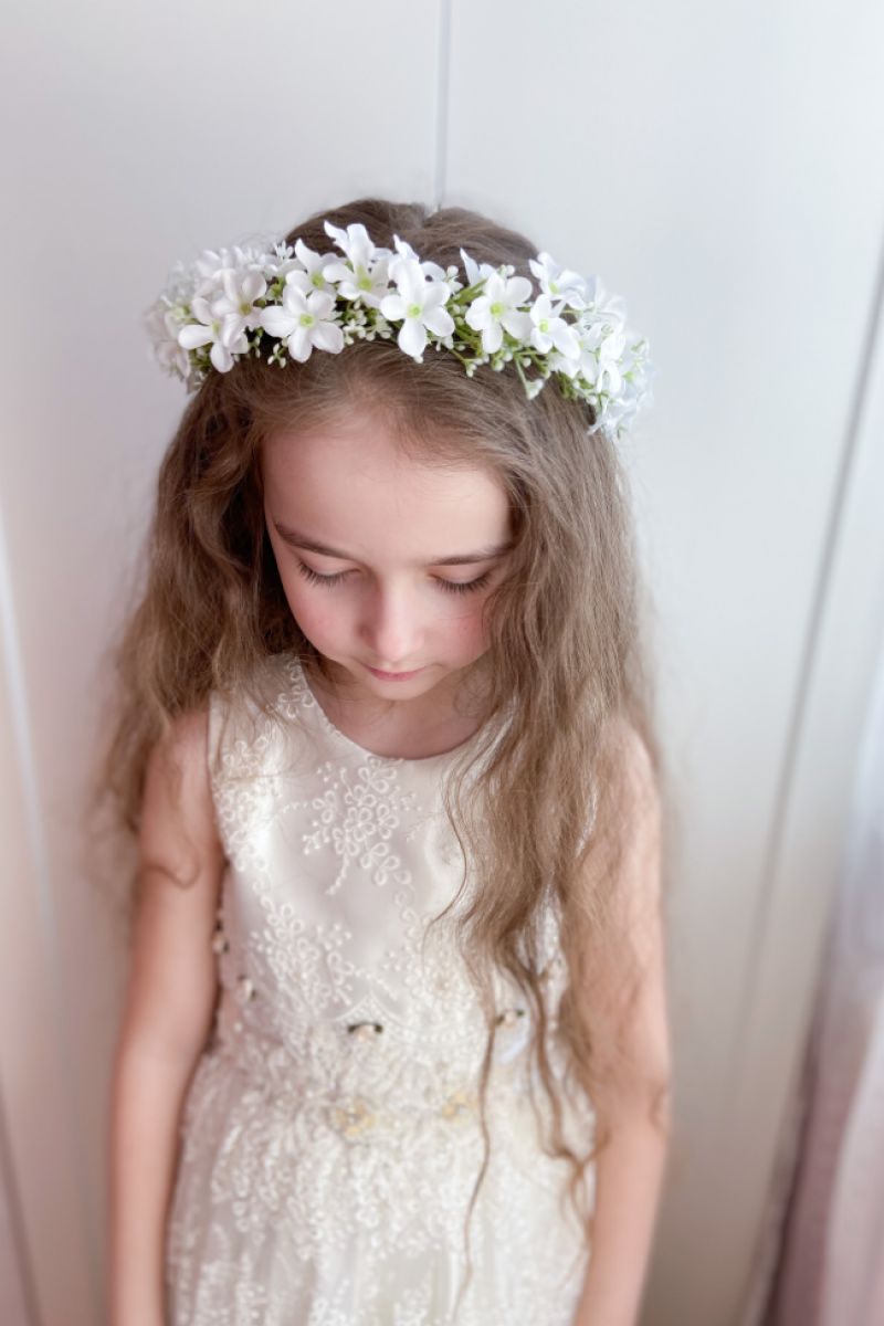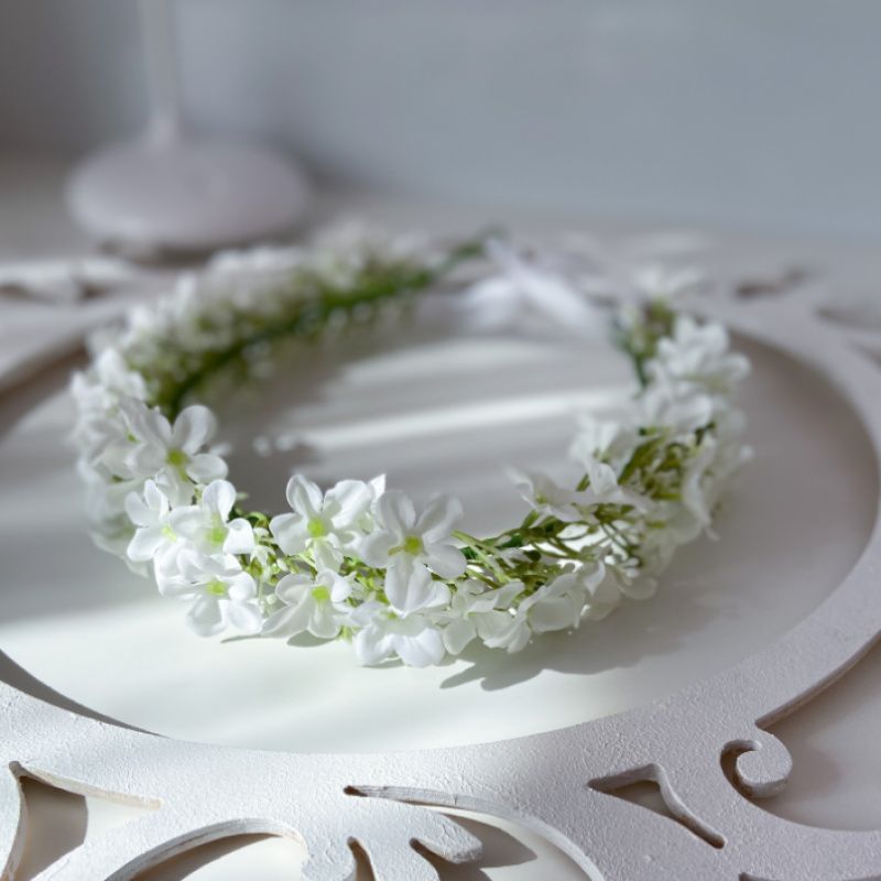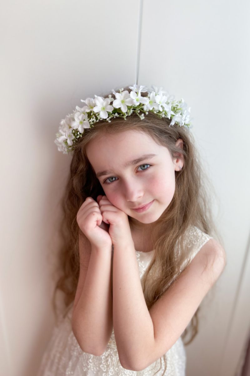 Нежный венчик для первого причастия или для свадьбы и других событий. Венок сделан из польских тканей белых мелких цветов Размер венка регулируется органзовой лентой. Венок подходит взрослым и ребенку. На фото девочка с охватом головы 54 см (среднестатистический размер головы взрослого и ребенка, то есть так же будет выглядеть на взрослом).