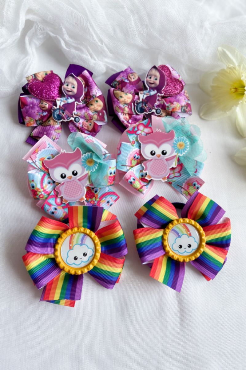 Неймовірний наборчик з резиночок зроблять щасливу Вашу дівчинку. Бантики зроблені з репсових стрічок.Мають два слої,кріпляться на резинку. Прикрашені акриловими планерами і різним декором. Ціна вказана за набір. Розмір бантика 7см.