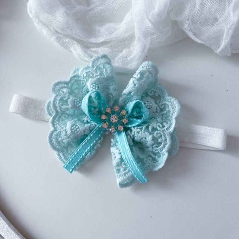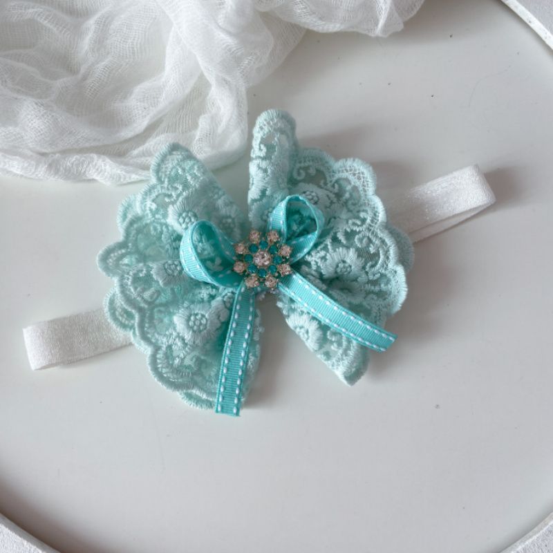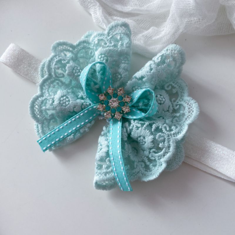 Неймовірний бантик зроблені з двохслоїв мережива. Основа еластична резинка. Оздоблені стразовою серединку та стрічкою.Розмір 12 см
