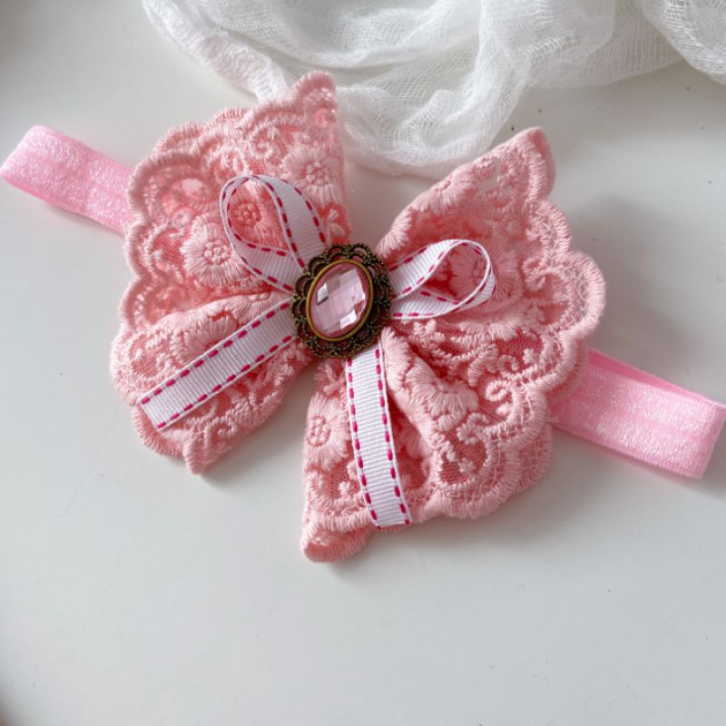 Невероятный бантик сделаны из двохслоив кружева. Основа эластичная резинка. Украшенные стразов серединку и стричкою.Розмир 12 см