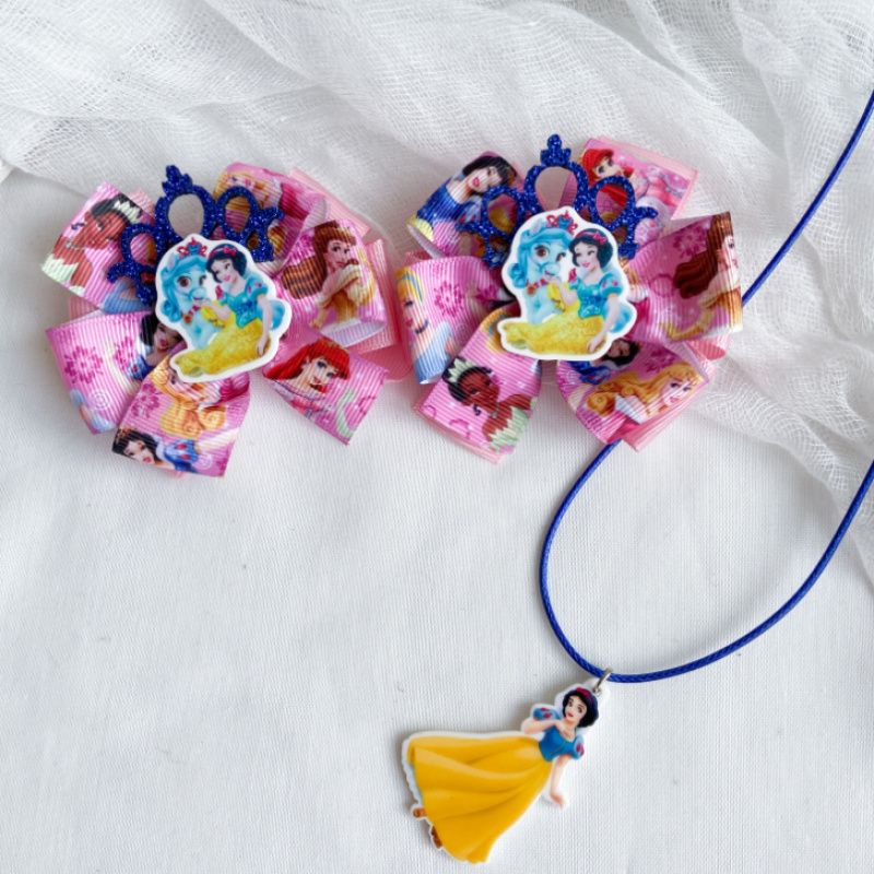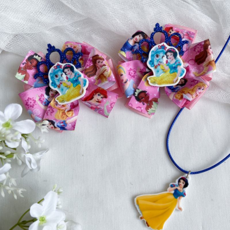Набор бантики и кулон- резинки в садик, в школу белоснежка