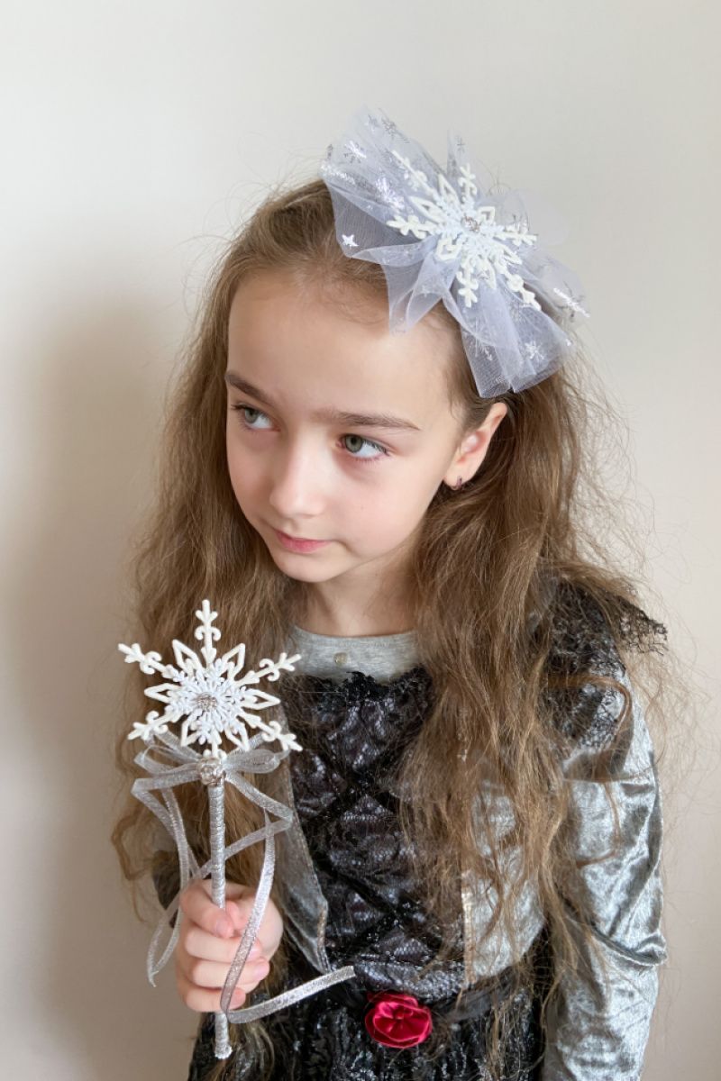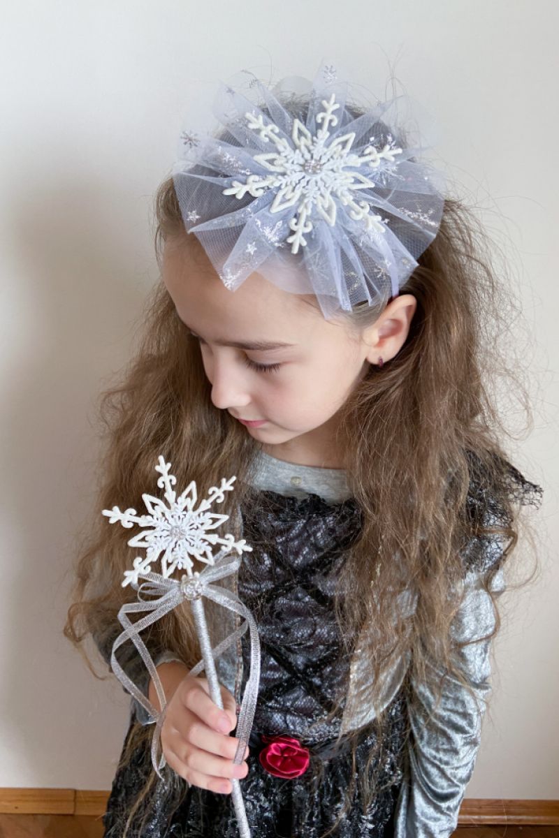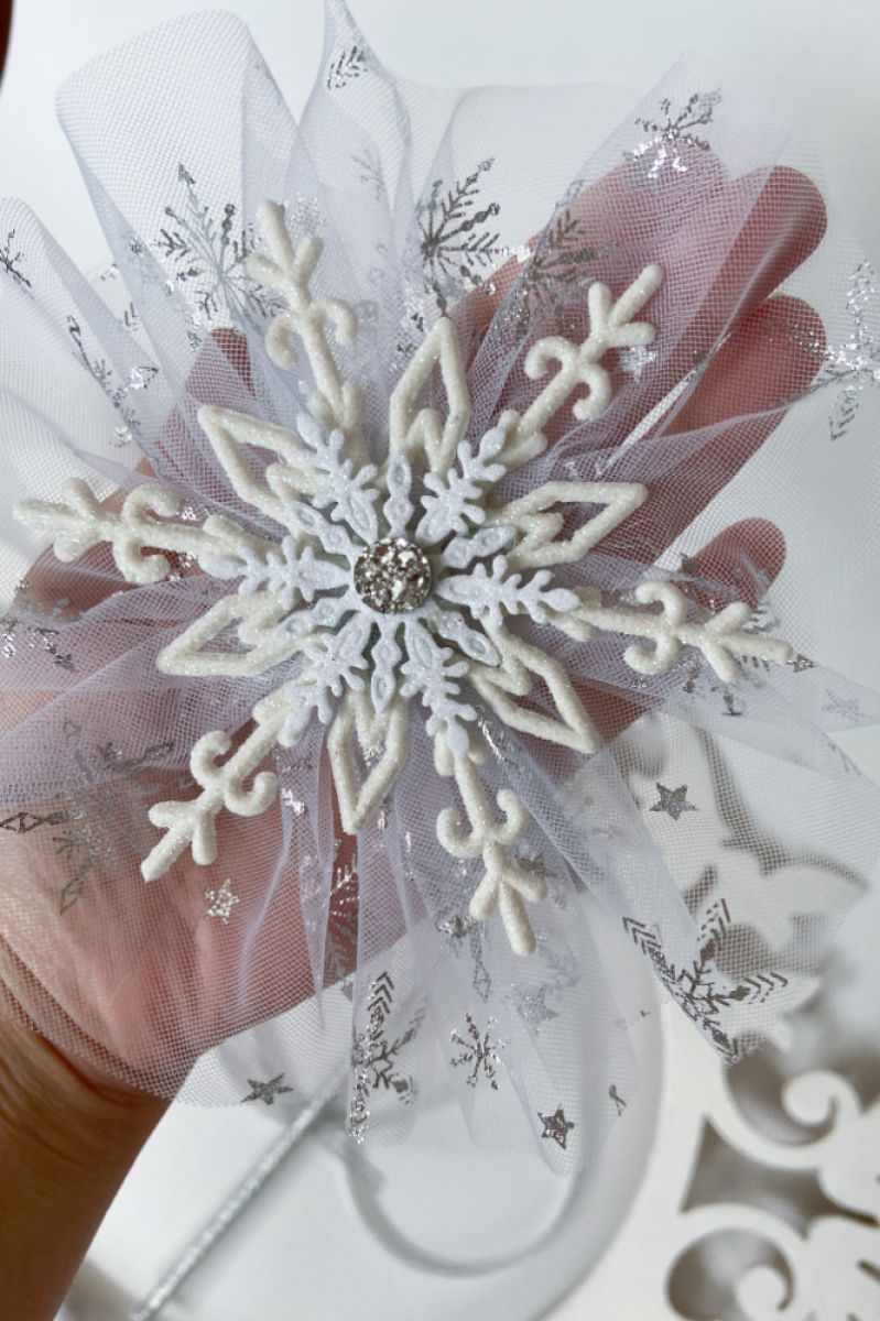 В набор снежинки входит: Обруч и палочка. Обруч металлический обтянутый тканью, Сбоку снежинка-пластик с глитером, украшенная фатином с блестками, снежинкой и серединкой. Палочка Украшена бантиком, снежинкой. Цена за набор.