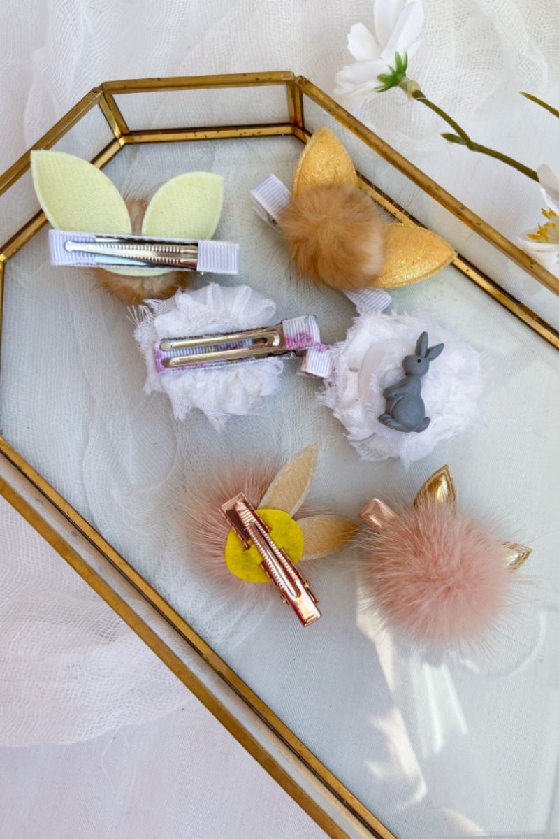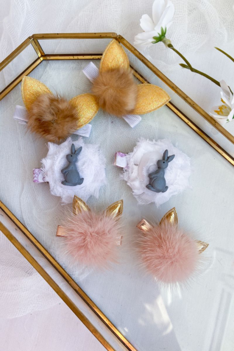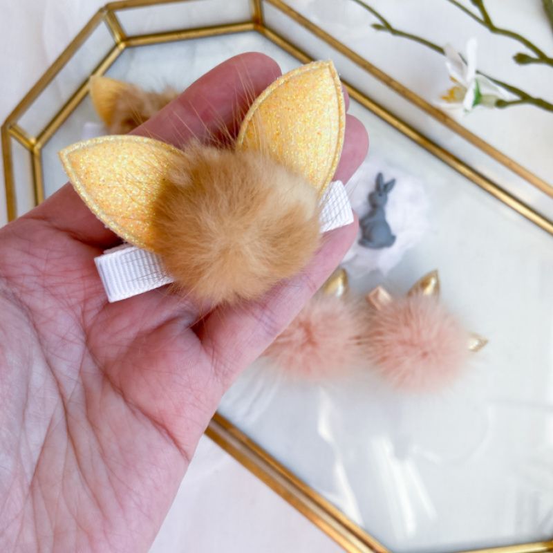 Оригинальный набор в одном экзепляры. Желтые блестящие ушки- экокожа с натуральным норковым помпоном-заколка. Вторые заколки цветы-ткань, зайчик акрил-заколка. Последние Желтые блестящие ушки- экокожа с натуральным норковым помпоном-заколка
