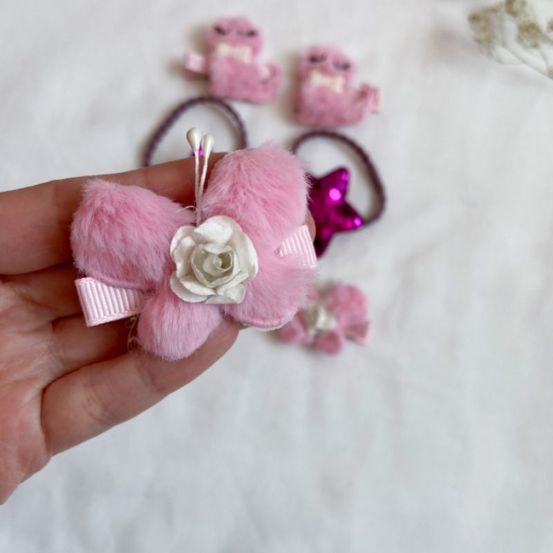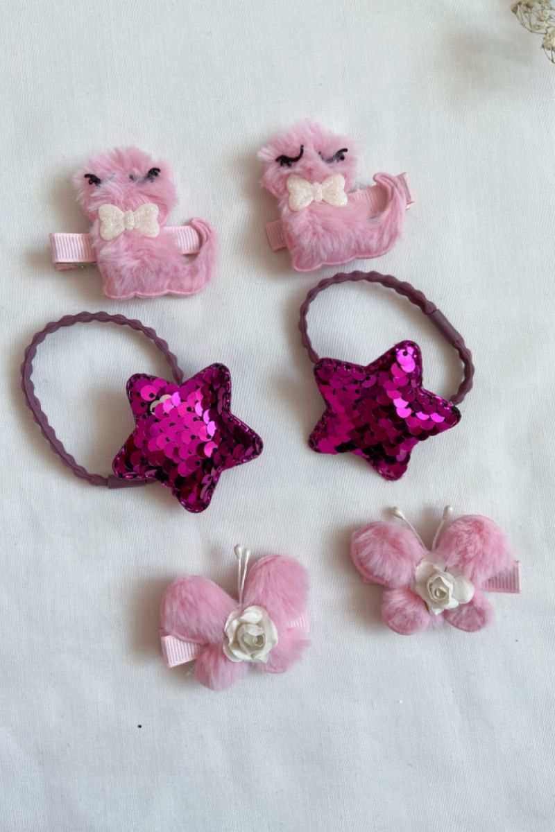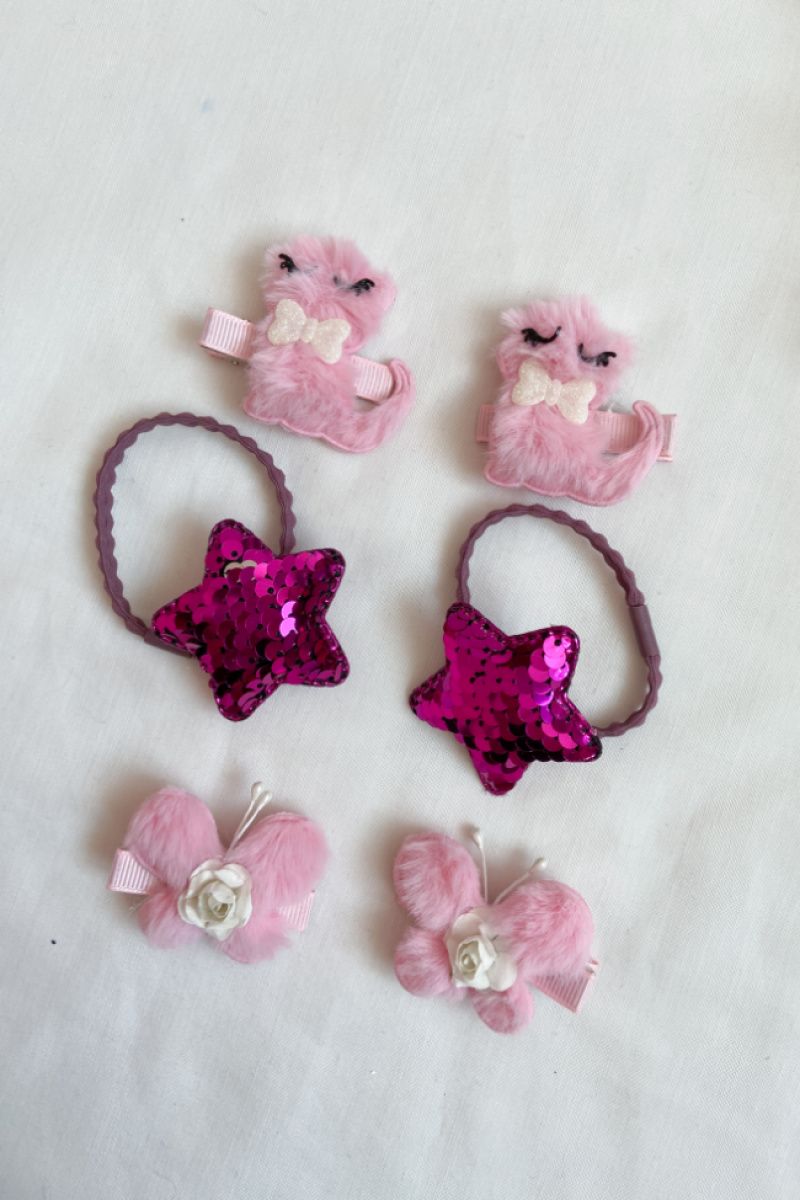 Оригинальный набор в одном экзепляры. Котики сделаны из екошкири- заколки. Звезды-перевертыш-пайетки переворачиваются-резинки. Метелик- сделан из гхутра украшен розой-заколки Цена за набор.