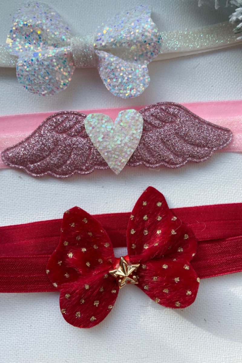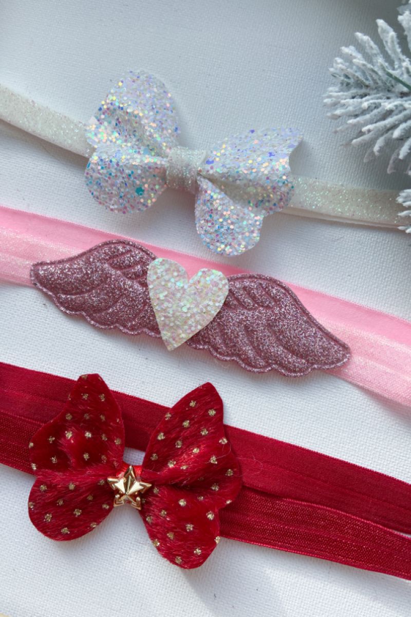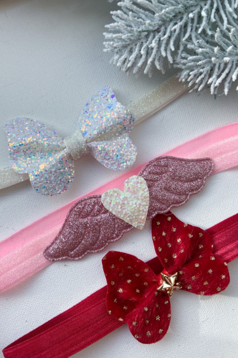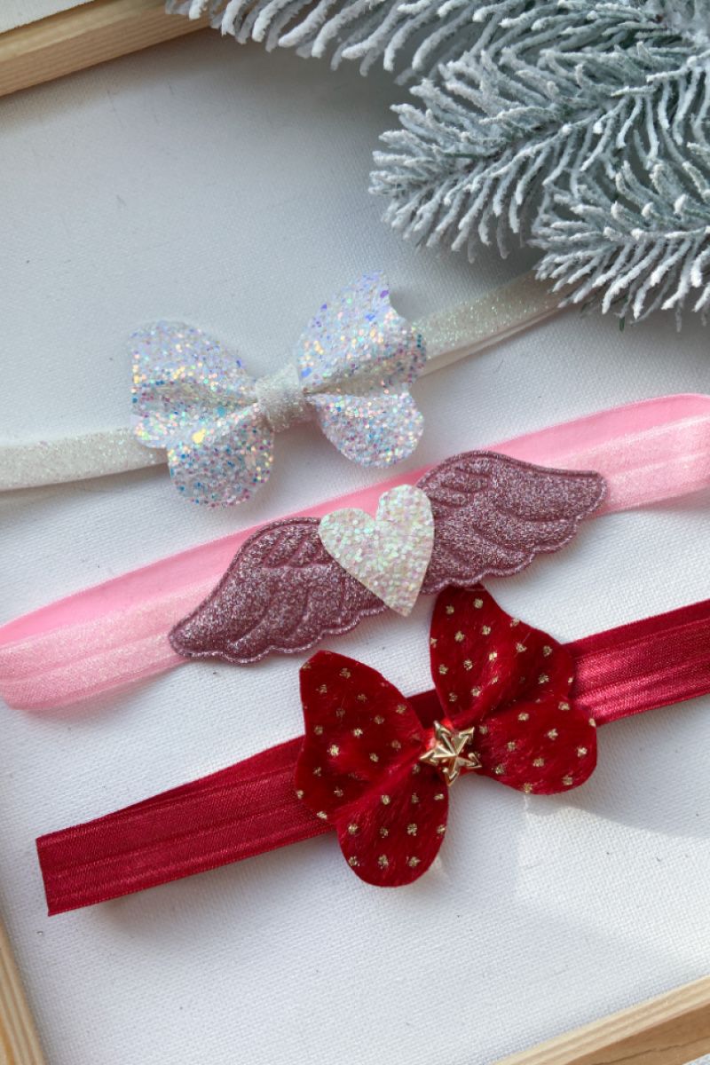 Невероятный набор повязочек для красотки. Бантики сделаны из экокожи, украшены декоративными элементами.Цена за набор