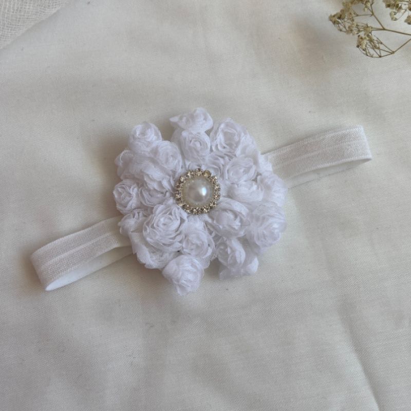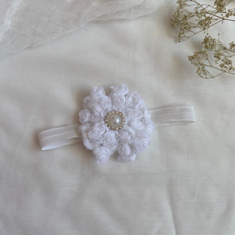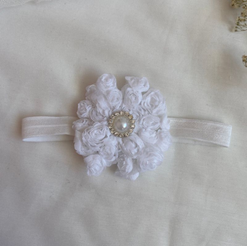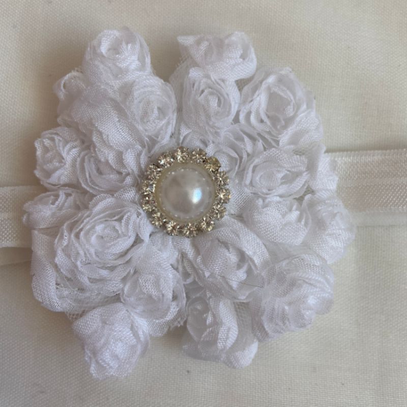 Бант сделан из фатина на котором нашиты розы. Серединка банта украшен большой брошью со стразами. Основа - елестична резинка, которая хорошо тянется и не давит головы. Бант имеет размер 7-8см. Работа в одном экземпляре
