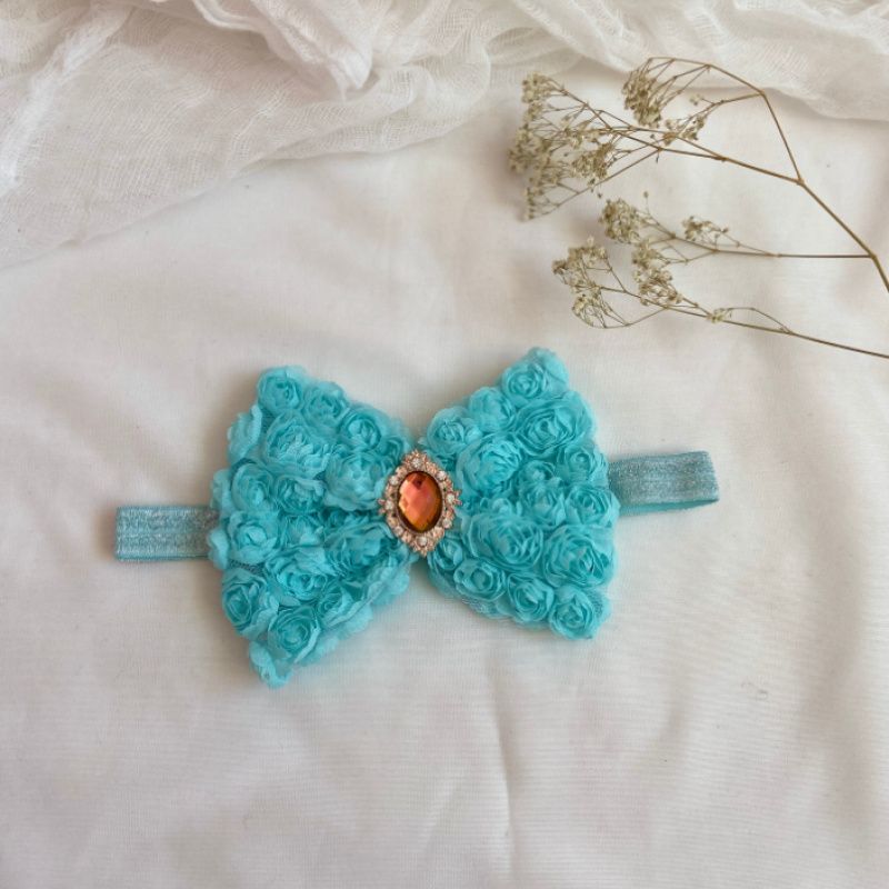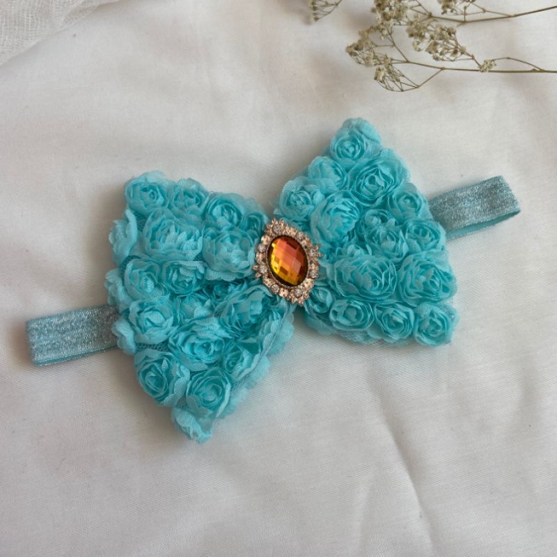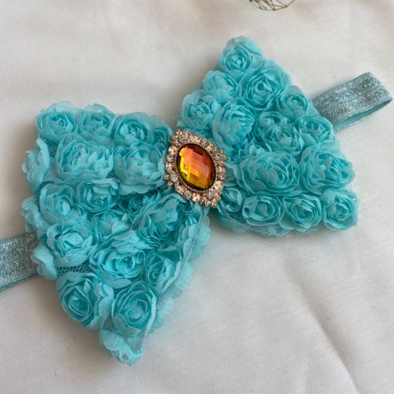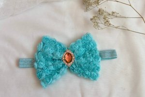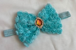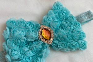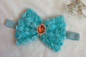 Бант сделан из фатина на котором нашиты розы. Серединка банта украшен большой брошью со стразами. Основа - елестична резинка, которая хорошо тянется и не давит головы. Бант имеет размер 10х14см. Работа в одном экземпляре
