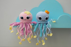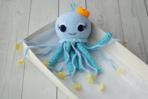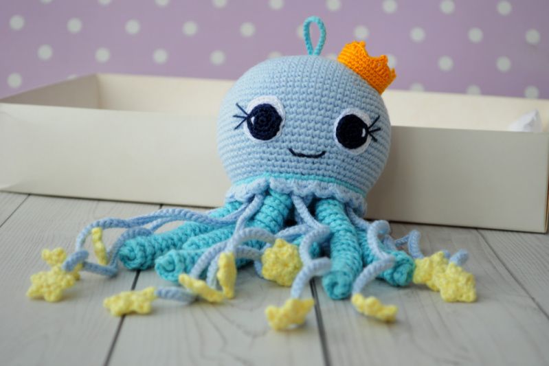 Вы только посмотрите на эту милую Осьминожка! Глядя на нее улыбаться и взрослые, и дети! Связана с любовью, с нежных, приятных на ощупь нитей - 100% хлопок, гипоаллергенный наполнитель. Особое текстура вязки, ниток, и щупалец в осьминожки помогает детям развивать мелкую моторику рук, внутри игрушки есть небольшое погремушка, которая имеет приятный. ненавязчивый звук. С помощью петельки, Осьминожка можно закрепить к манежу, коляски или кроватки. Для удобного ухода выбирайте ручная стирка в мыльной воде, или же стирка на деликатном режиме в стиральной машине. Рекомендуем эту игрушку в качестве подарка для детей в возрасте от 1 месяца и до тех пор, пока продолжается детство :) Если у вас есть пожелания по изменению цвета игрушки - звоните, согласуем все детали. Чтобы приобрести игрушку можно сделать заказ на сайте ZRK, написать нам в Viber или позвонить нам. Делайте особые и радостные подарки для самых дорогих ♥ Осьминожка мечтает уже сегодня начать свое путешествие, спешите приобрести))