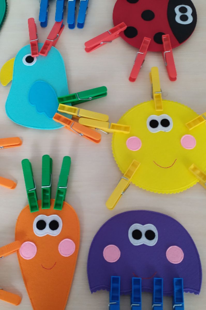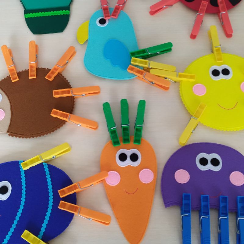 В комплекте 9 игрушек и 40 прищепок и мешочек для хранения
