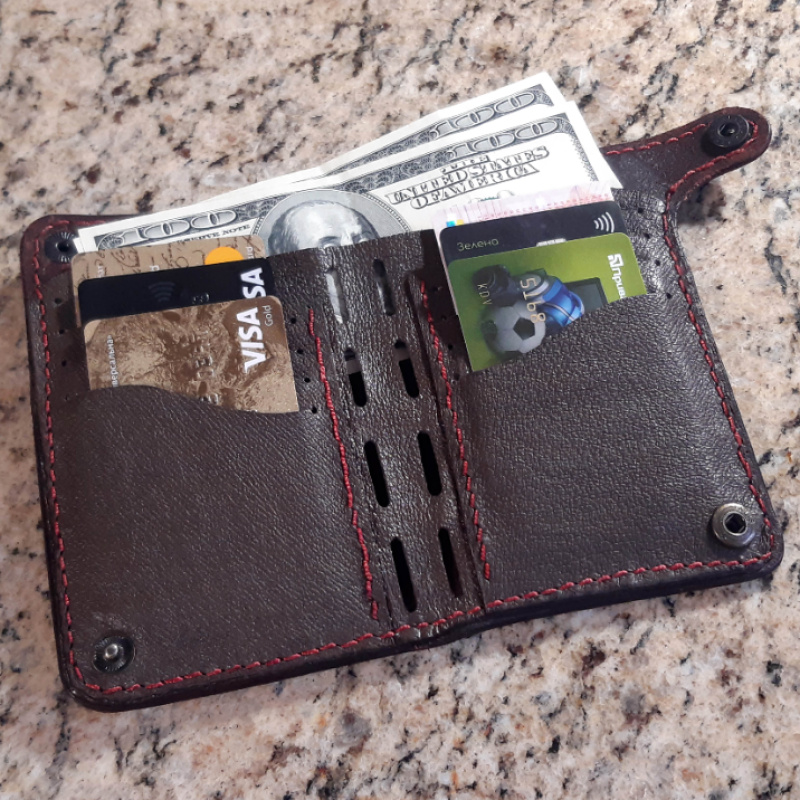 Кошелек сшит очень прочной капроновой нитью для обуви;