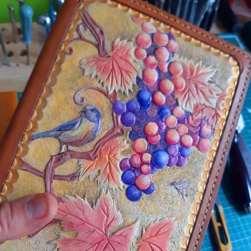 сделана из кожи растительного дубления (Италия) и окрашенных кусков кожи,