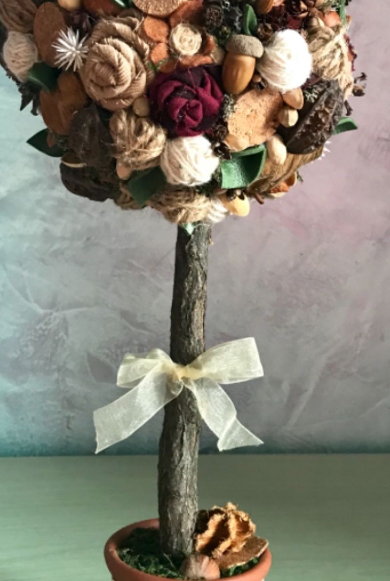 Топиарий ручной работы с природных материалов, керамический горшочек